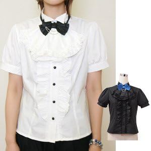 Amazon 蝶ネクタイがワンポイント シャボ付フロントフリルブラウス P227 ゴスロリ ロリータ パンク コスプレ コスチューム メイド 黒 S コスプレ 仮装 通販